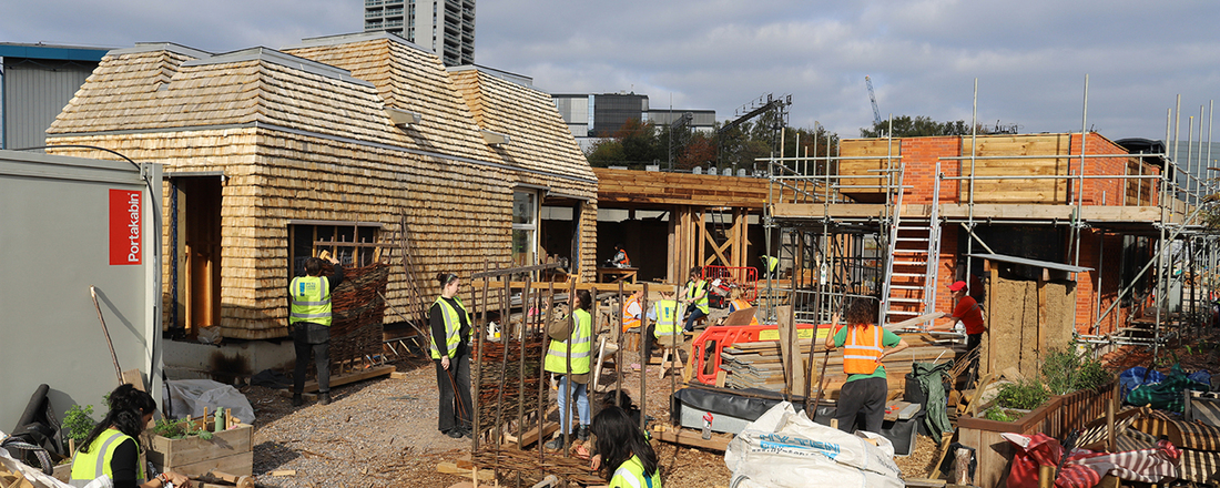 At the Triangle site in King’s Cross, Kattein is taking participatory construction one step further – and says he’s ready to scale up even more. These are permanent buildings out of natural materials built to last over 100 years – the site Is on a 999-year lease.